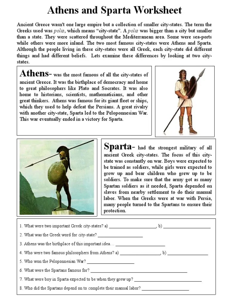 Athens And Sparta Worksheet Answer Key Athens And Sparta Worksheet