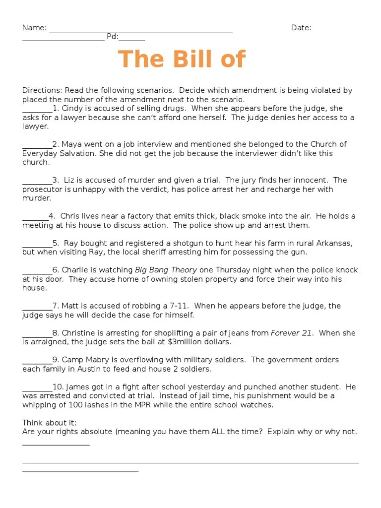 20+ Beautiful Bill Of Rights Scenarios Worksheet