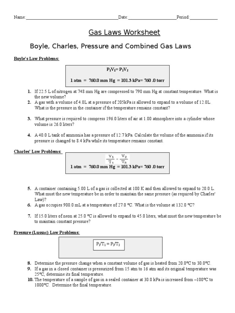 Boyles And Charles Law Worksheet Answers Boyle039S Law —