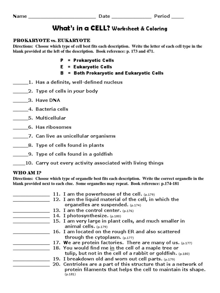 Cell Biology Prokaryotes And Eukaryotes Coloring Worksheet Answers
