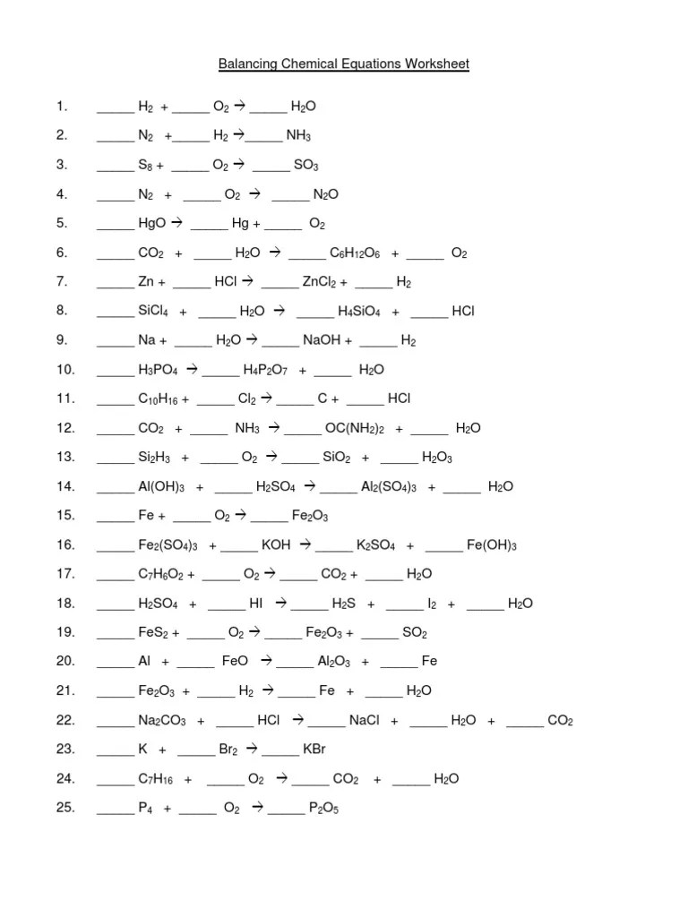 Chapter 7 Worksheet 1 Balancing Chemical Equations Answers —