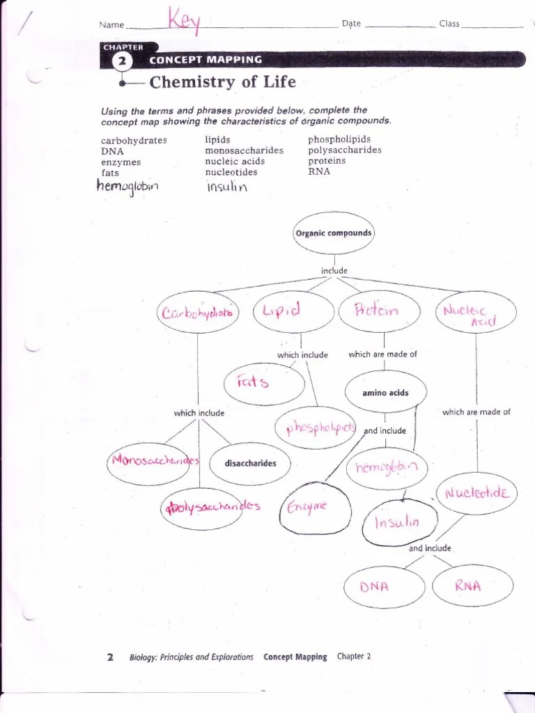 Chapter 2 The Chemistry Of Life Concept Map Answer Key Map Of World