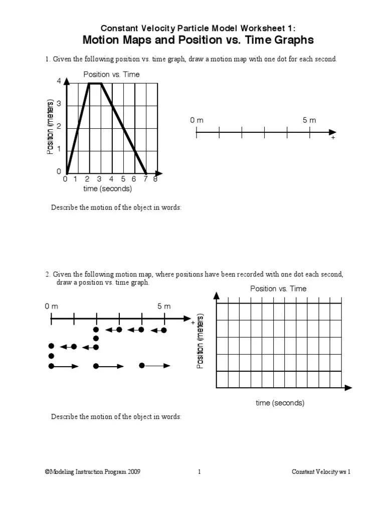 Constant Velocity Particle Model Worksheet 3 Position Vs Time Graphs