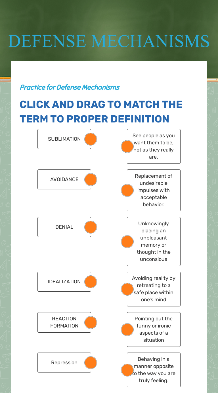 DEFENSE MECHANISMS Interactive Worksheet by Jessica Ecker Wizer.me