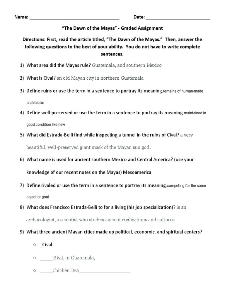 Answers Dawn of The Mayas Questions Maya Civilization Mesoamerica