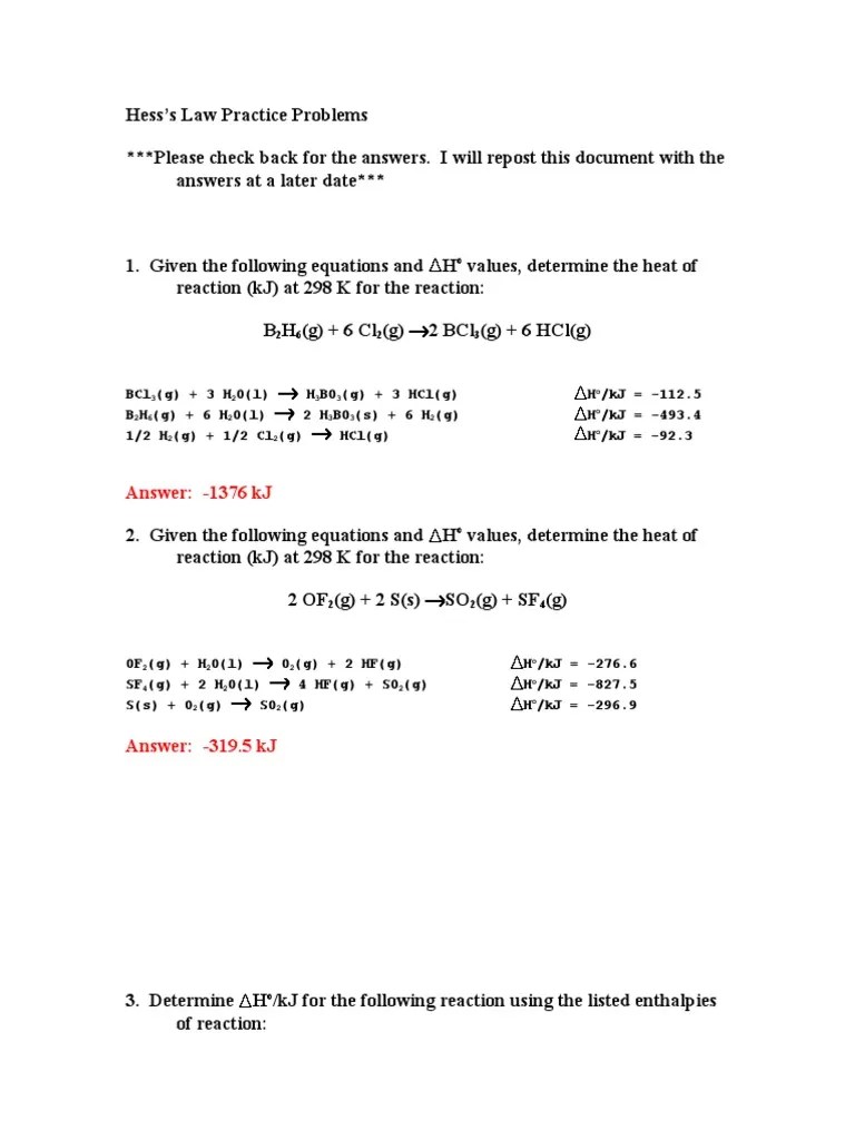 ️Hess's Law Worksheet Answers Free Download Goodimg.co
