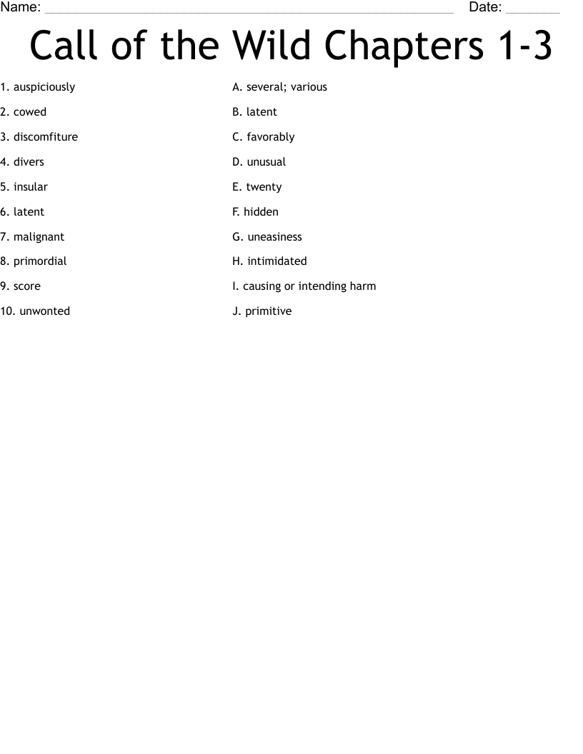 Call of the Wild Chapters 13 Worksheet WordMint