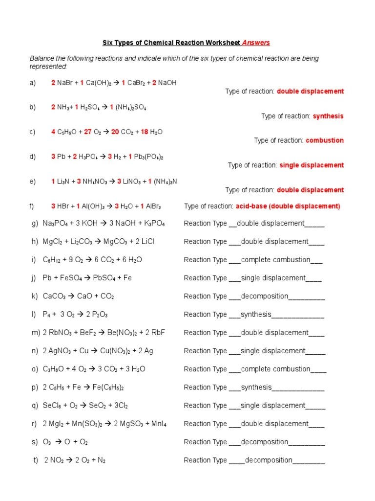 5 Types Of Chemical Reactions Lab With Worksheet Answers