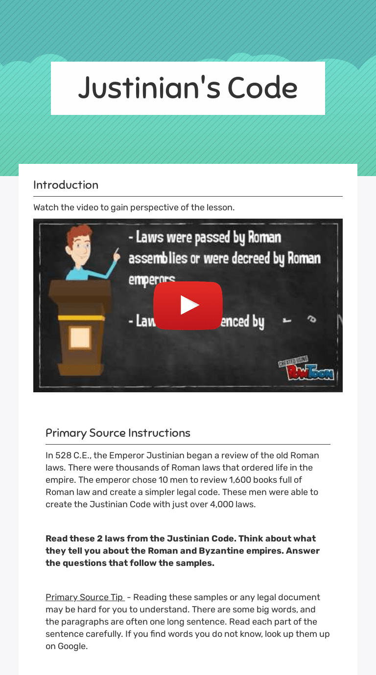 Justinian's Code Interactive Worksheet by Ashley Mullinax Wizer.me