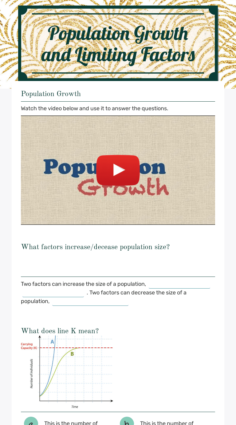 Population Growth and Limiting Factors Interactive Worksheet by Amy