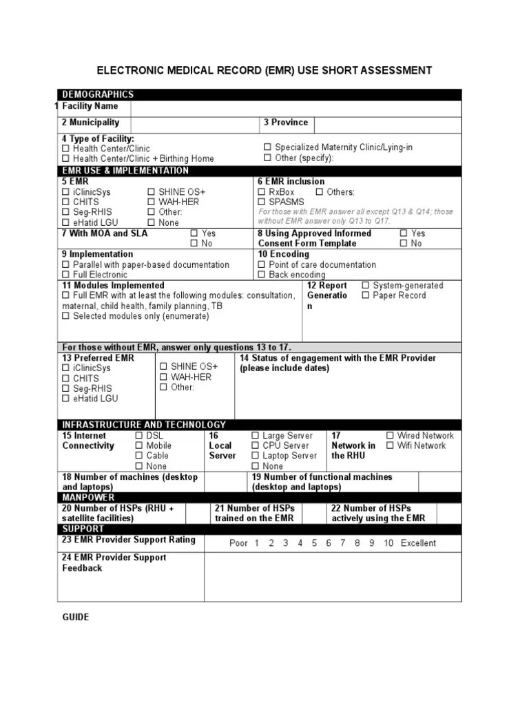 Emr Questionnaire Template printable pdf download
