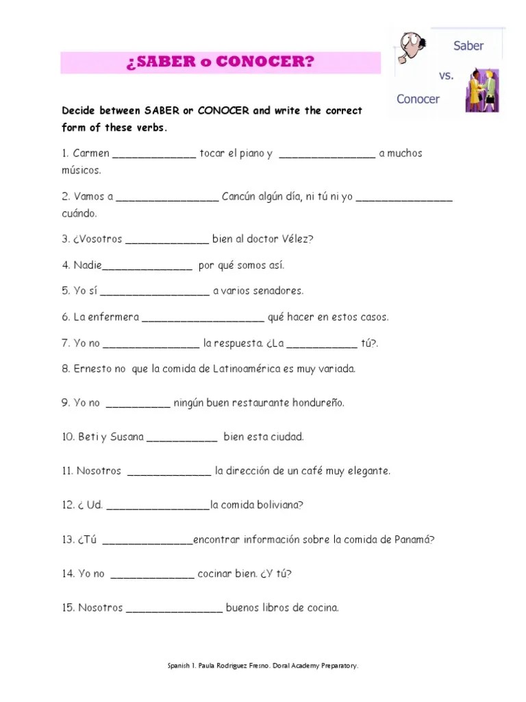 Saber O Conocer Worksheet