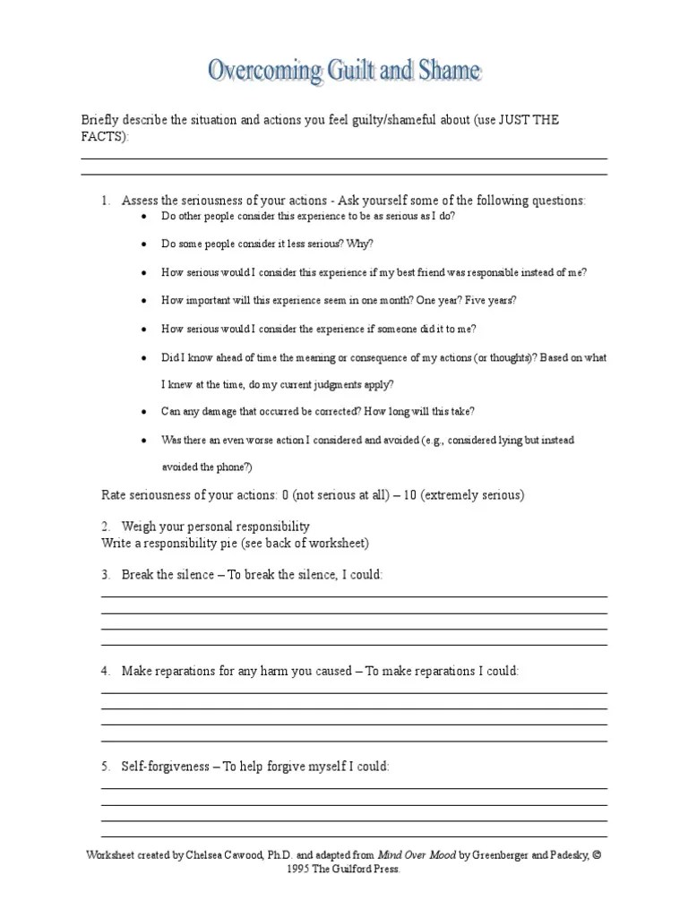 Dealing With Guilt And Shame Worksheets