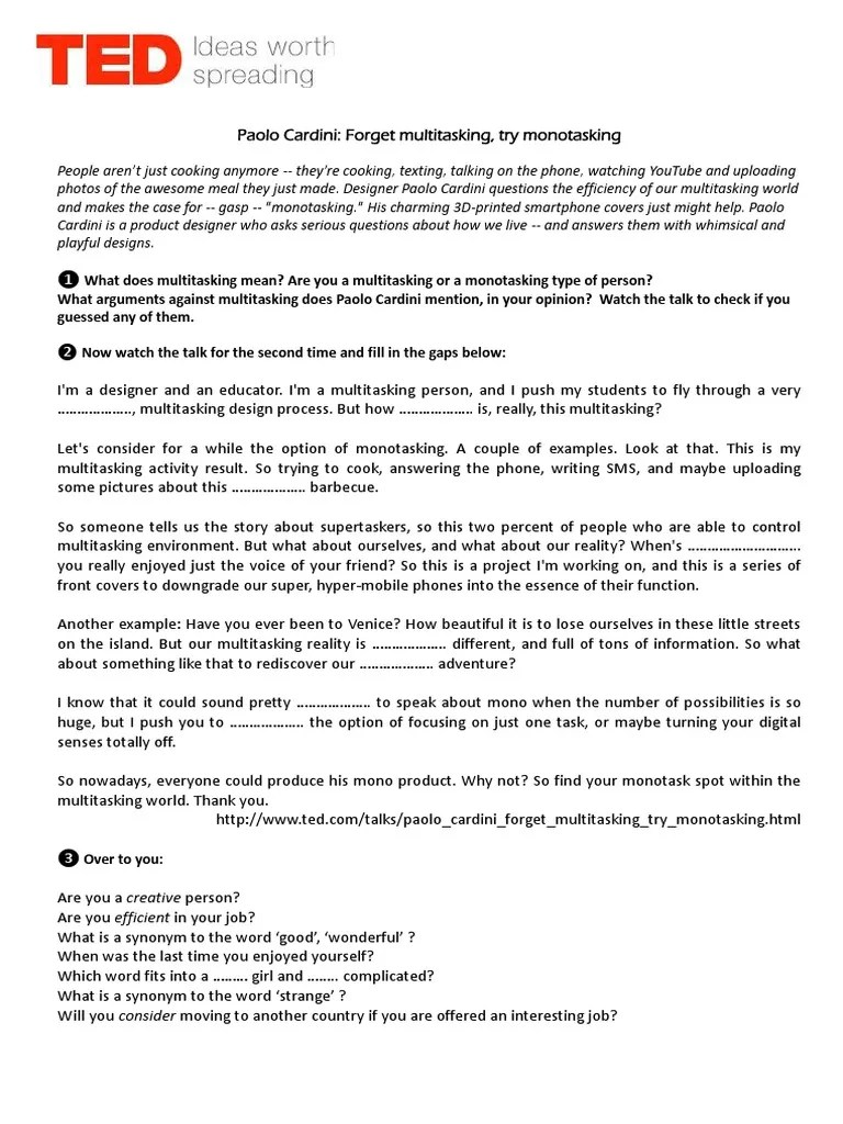 Ted Talk Worksheet - The worksheets are a range of comprehension questions designed to help students develop. Talk and complete the following grid. A discussion of ten probable disasters, with examples and possible solutions. Web showing a ted talk? Web this worksheet was designed to give students a specific task that will guide their viewing of any ted talk. Web enclosed you’ll find both a pdf version of the ted talk worksheet to print and use in your classroom (see page 2) and a google drive version to use with online learners. Ted talks are influential videos from expert speakers on education, business, science, tech. A detailed talk from an established colonisation scientist. Download this printable pdf and you're all set. This simple and fun worksheet can be used for any ted talk. Web are you preparing to give a tedx talk? Discover hundreds of animated lessons, create customized lessons, and share your big ideas. Ted talks are influential videos from expert speakers on education, business, science, tech. A discussion of ten probable disasters, with examples and possible solutions. But, as susan cain argues in this passionate talk,. Ted talks worksheets to print: Web showing a ted talk? Talks to help practice patience. Web in a culture where being social and outgoing are prized above all else, it can be difficult, even shameful, to be an introvert. If you run out of space on the grid for any of your answers, feel free to continue writing on the. Web this worksheet was designed to give students a specific task that will guide their viewing of any ted talk. Web we would like to show you a description here but the site won’t allow us. Ted talks worksheets to print: But, as susan cain argues in this passionate talk,. Web are you preparing to give a tedx talk? Ted talks are influential videos from expert speakers on education, business, science, tech. Web let these talks help you move out of your comfort zone and embrace the beauty of sharing who you are with the world. Web 10 new ted talks listening worksheets based on recent ted talks. If so, you might want to check out this. This simple. Web showing a ted talk? But, as susan cain argues in this passionate talk,. A detailed talk from an established colonisation scientist. Web these worksheets will help your students organize their thoughts about what is presented and explore the topics deeper. Web enclosed you’ll find both a pdf version of the ted talk worksheet to print and use in your. A detailed talk from an established colonisation scientist. Ted talks are influential videos from expert speakers on education, business, science, tech. Talks to help practice patience. Web this worksheet was designed to give students a specific task that will guide their viewing of any ted talk. Web ted talk worksheet tedtalk view the t.e.d. If you run out of space on the grid for any of your answers, feel free to continue writing on the. Web enclosed you’ll find both a pdf version of the ted talk worksheet to print and use in your classroom (see page 2) and a google drive version to use with online learners. Web these worksheets will help your. Web we would like to show you a description here but the site won’t allow us. Web enclosed you’ll find both a pdf version of the ted talk worksheet to print and use in your classroom (see page 2) and a google drive version to use with online learners. Get comfortable with being uncomfortable created by danis marandis this is. Web check out our wide collection of pdf lesson plans and worksheets for teaching online based on famous ted talks featuring inspiring speakers. A discussion of ten probable disasters, with examples and possible solutions. Web ted talk worksheet tedtalk view the t.e.d. Web enclosed you’ll find both a pdf version of the ted talk worksheet to print and use in. Keyword ted talks worksheets formats google apps pdf see all formats grades. Download this printable pdf and you're all set. Web showing a ted talk? If so, you might want to check out this. Web we would like to show you a description here but the site won’t allow us. If you run out of space on the grid for any of your answers, feel free to continue writing on the. Discover hundreds of animated lessons, create customized lessons, and share your big ideas. Talk and complete the following grid. Web let these talks help you move out of your comfort zone and embrace the beauty of sharing who you are with the world. But, as susan cain argues in this passionate talk,. Web this worksheet was designed to give students a specific task that will guide their viewing of any ted talk. A detailed talk from an established colonisation scientist. Web ted talk worksheet tedtalk view the t.e.d. Web check out our wide collection of pdf lesson plans and worksheets for teaching online based on famous ted talks featuring inspiring speakers. Web in a culture where being social and outgoing are prized above all else, it can be difficult, even shameful, to be an introvert. Web showing a ted talk? Download this printable pdf and you're all set. Get comfortable with being uncomfortable created by danis marandis this is a zip file that contains a microsoft word worksheet (along with a pdf. Web this zip file contains microsoft word document worksheets (along with pdf file versions as well) for 100 ted talk videos that are themed around a variety of psychological. Web enclosed you’ll find both a pdf version of the ted talk worksheet to print and use in your classroom (see page 2) and a google drive version to use with online learners. The worksheets are a range of comprehension questions designed to help students develop. Talks to help practice patience. Web are you preparing to give a tedx talk? Web ted talks worksheets teaching resources | teachers pay teachers you selected: Web these worksheets will help your students organize their thoughts about what is presented and explore the topics deeper.TED talks English ESL Worksheets for distance learn