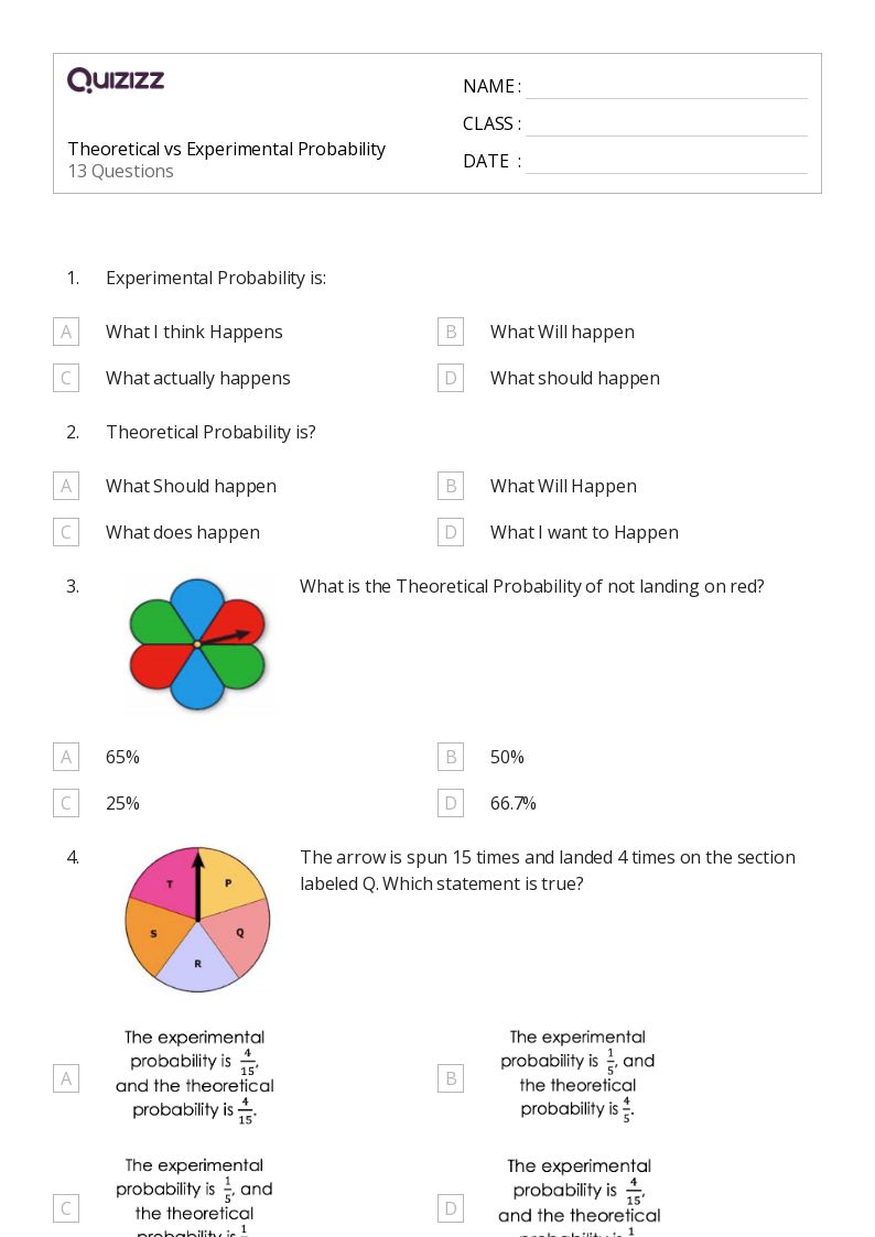 50+ experimental probability worksheets on Quizizz Free & Printable