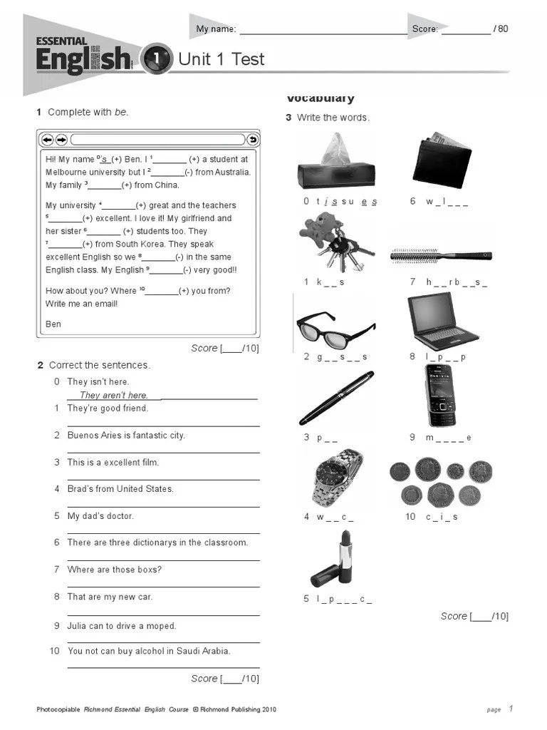 Unit 1 Test Grammar Vocabulary