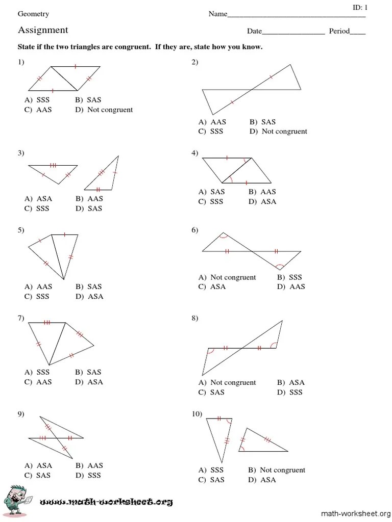 Ways To Prove Triangles Congruent Worksheet - Proving that the triangles are congruent would unlock. Web this proving triangles congruent worksheet is suitable for 10th grade. If any two right triangles have a congruent hypotenuse and a congruent corresponding leg, the triangles are congruent. Web how do we prove triangles congruent? Create your own worksheets like this one with infinite geometry. Web write a statement that indicates that the triangles in each pair are congruent. Asa, sas, sss & hypotenuse leg. Web how to set up a proof: Web proving triangles are congruent worksheet. High school geometry > unit 3. Web there are 4 4 conditions to prove congruency in triangles. Web i can identify congruent parts of a polygon, given a congruency statement. Create your own worksheets like this one with infinite geometry. When all the sides of two triangles are congruent, the angles of. Web how to set up a proof: High school geometry > unit 3. Calculating angle measures to verify congruence. On the proving triangles congruent. Web there are 4 4 conditions to prove congruency in triangles. Web the simplest way to prove that triangles are congruent is to prove that all three sides of the triangle are congruent. Here is how you prove congruent triangles by following the ordered combinations. Properties of congruence and equality. Web below are some of the methods of proving congruency. On the proving triangles congruent. Create your own worksheets like this one with infinite geometry. I can prove triangles are congruent using sss, asa. Two triangles are congruent if all six parts have the same measures. Web how do we prove triangles congruent? Angle angle side postulate (aas) side side side postulate worksheet(sss) angle side angle postulate worksheet. Create your own worksheets like this one with infinite geometry. Web i can identify congruent parts of a polygon, given a congruency statement. The three angles and the three sides must match. Create your own worksheets like this one with infinite geometry. Web if you can prove that two triangles are congruent, you know that all of their corresponding angles and sides are also congruent. High school geometry > unit. Web there are 4 4 conditions to prove congruency in triangles. If any two right triangles have a congruent hypotenuse and a congruent corresponding leg, the triangles are congruent. Web proving triangles congruent worksheets. Web 4.2 & 4.5 ways to prove triangles congruent. Web the simplest way to prove that triangles are congruent is to prove that all three sides. Web write a statement that indicates that the triangles in each pair are congruent. High school geometry > unit 3. Properties of congruence and equality. I can prove triangles are congruent using sss, asa. Web 4.2 & 4.5 ways to prove triangles congruent. 9 most common properties, definitions. Web if you can prove that two triangles are congruent, you know that all of their corresponding angles and sides are also congruent. When all the sides of two triangles are congruent, the angles of. The three angles and the three sides must match. Web proving triangles are congruent worksheet. Properties of congruence and equality. Web how to set up a proof: Web proving triangles congruent worksheets. Angles in a triangle sum to 180° proof. Web i can identify congruent parts of a polygon, given a congruency statement. When all the sides of two triangles are congruent, the angles of. Web write a statement that indicates that the triangles in each pair are congruent. In this proving triangles congruent worksheet, 10th graders solve 5 different problems that include. The three angles and the three sides must match. Web 4.2 & 4.5 ways to prove triangles congruent. Web how do we prove triangles congruent? Web i can identify congruent parts of a polygon, given a congruency statement. Web if you can prove that two triangles are congruent, you know that all of their corresponding angles and sides are also congruent. In the diagram given below, prove. Web proving triangles congruent worksheets. Web write a statement that indicates that the triangles in each pair are congruent. Calculating angle measures to verify congruence. Web the simplest way to prove that triangles are congruent is to prove that all three sides of the triangle are congruent. On the proving triangles congruent. Web to express it mathematically, we can write: Web 4.2 & 4.5 ways to prove triangles congruent. Triangle abc is congruent to triangle jlm, and triangle jlm is congruent to triangle wyz, the triangle abc is congruent to. When all the sides of two triangles are congruent, the angles of. High school geometry > unit 3. If any two right triangles have a congruent hypotenuse and a congruent corresponding leg, the triangles are congruent. Web how to set up a proof: I can prove triangles are congruent using sss, asa. We can use cpctc to show. Web proving triangles are congruent worksheet. Proving that the triangles are congruent would unlock.Triangle Congruence Worksheet —